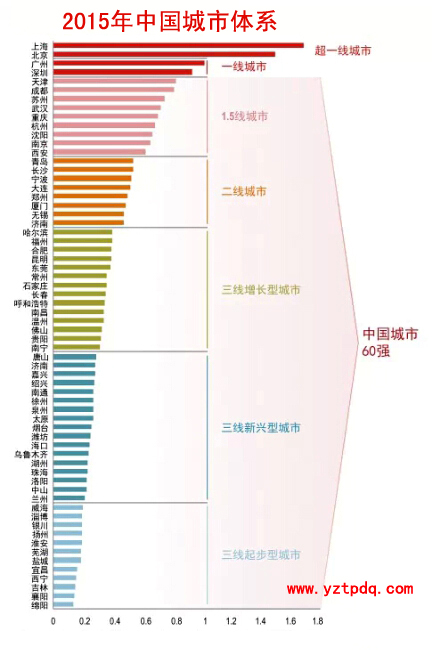 據了解,仲量聯行基于GDP、人口、富裕程度、投資、零售額、居民儲蓄、教育基礎設施、土地出讓量和零售商數量等多個變量建立模型,從287個城市中最終篩選出中國城市60強。不過,60強并不包括中國最發達的“北上廣深”。這個體系中,上海和北京作為“超一線”城市,廣州和深圳作為“一線城市”,他們是評出60強的“基準”。江蘇省入榜的9城中,南京和蘇州為1.5線城市;無錫為二線城市;常州為三線增長型城市;南通、徐州為三線新興型城市;淮安、鹽城和揚州則為三線起步型城市。