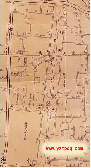 小編查找志書中地圖發現,位于府衙、縣衙的東面,從舊城北門水關至南水關的這段市河,沿河附近設有縣學(現揚大附小址)、文魁樓(今四望亭)、文廟(今政協),河上架有文津橋,橋上有文昌閣,上曾懸有“邗上文樞”匾額……揚州的各類文化殿堂都緊臨這段市河。相傳在古代這段市河被視為文脈,因此這段市河在民間被稱為“文河”。