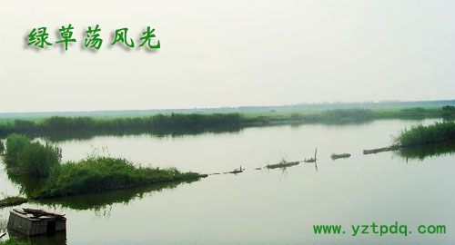 過去,綠草蕩廣袤千頃,土肥水甜,蒲草連天,荷花映日,港汊縱橫,河寬流舒,蘆荻深處,人跡罕至,蕩里藻荇豐茂,湖水清澈如鏡。晴天,清晨傍晚,彩霞映照,天光云彩,上下一色,風景如畫。舟行水上俯瞰水底,魚鱉水族,歷歷可數。深秋季節,毎日黃昏,野鴨成陣,鴻雁遮天,呼嘯飛來,覓食棲息,是名副其實的水鄉澤國,魚米之鄉。